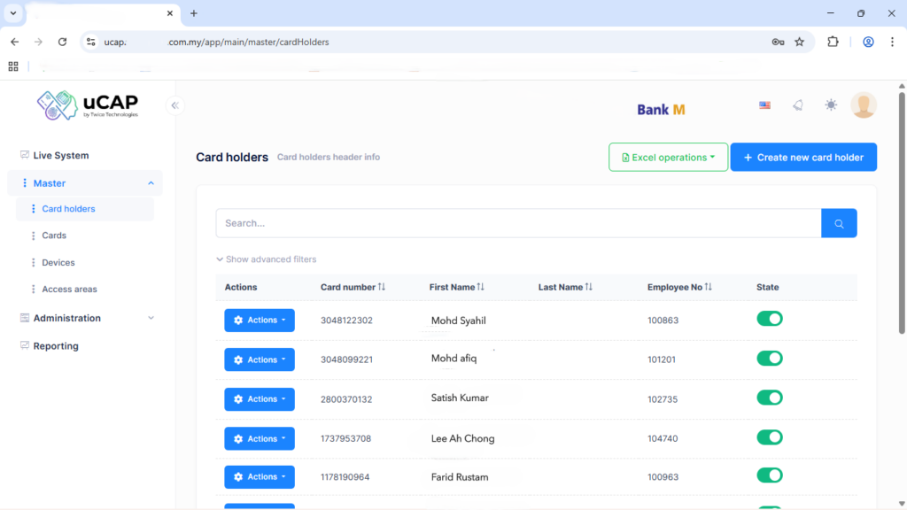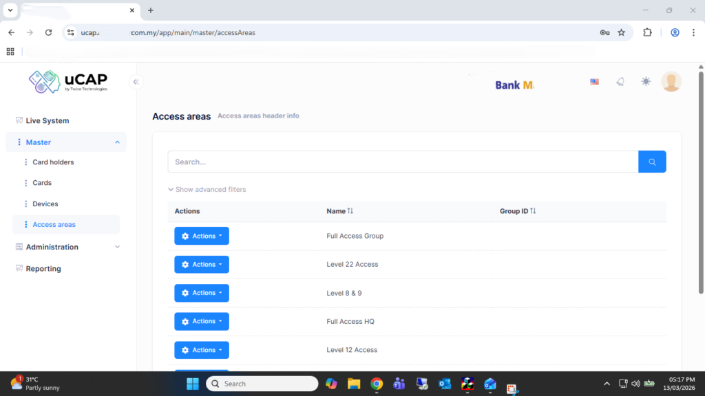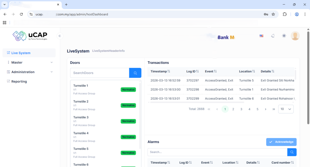 Bank M implemented our Unified Credentials Access Platform to centrally manage access control across multiple floors and turnstile entry points, integrating both biometric authentication fingerprint and card-based credentials. This unified system enhances security by ensuring only authorized personnel can access designated areas, while also streamlining user management under a single platform. The backend card access system that been used in is Vanderbilt ACT Pro Enterprise.