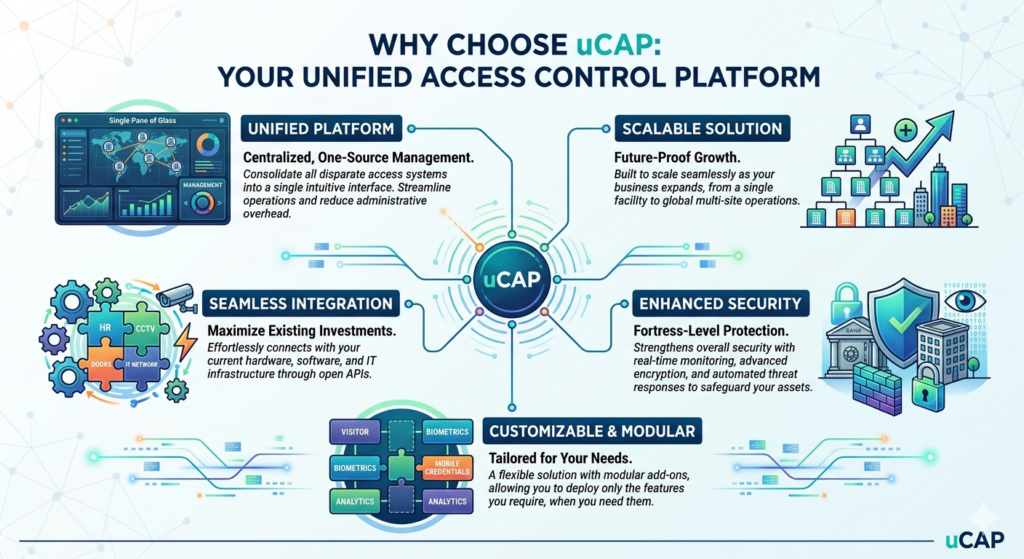 As organizations expand, managing access control across multiple locations becomes increasingly complex. uCAP is built on a scalable architecture that supports growth without compromising performance or security.